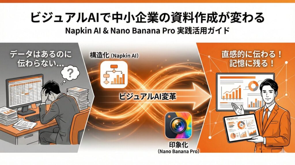 「データはあるのに、伝わる資料が作れない」 中小企業の経営者やマーケティング担当者から、こうした声をよくいただきます。売上推移、顧客分析、事業計画。手元にはデータがあるにもかかわらず、それを「相手に伝わるビジュアル」に変 […]