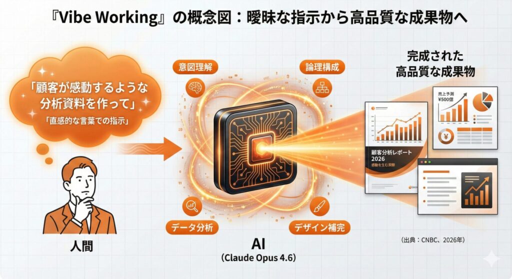 (出典: CNBC「Anthropic launches Claude Opus 4.6 as AI moves toward a ‘vibe working’ era」、2026年2月5日)