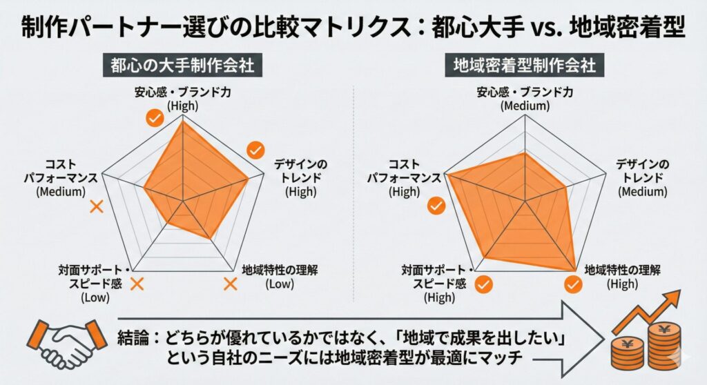 地域密着型の制作会社を選ぶメリットの一つは、地域特性への理解度です。