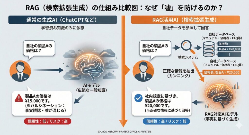 ここで重要になるのが「RAG(検索拡張生成)」という技術です。